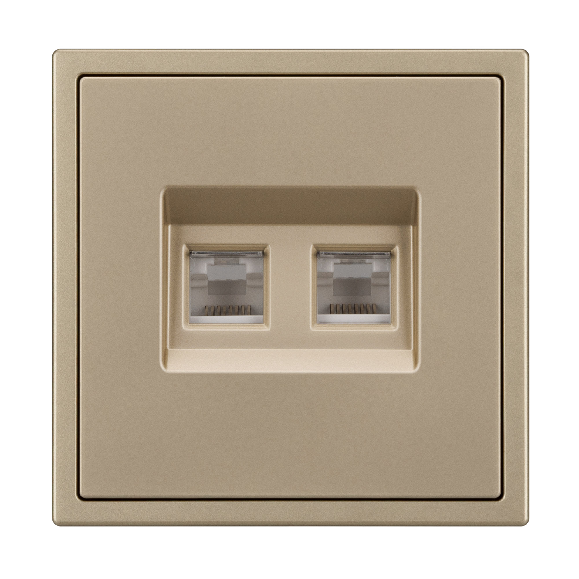 Механизм сдвоенной телефонной розетки совместим с рамками серии NOBE, создает утонченный минималистичный вид. Скрытый тип монтажа позволяет гармонично встроить в интерьер любого современного дизайн-проекта. Видимая часть механизма выполнена из высококачественного пластика цвета золотой песок и имеет Soft-Touch покрытие, что придает изделию приятные тактильные ощущения и стильный внешний вид.