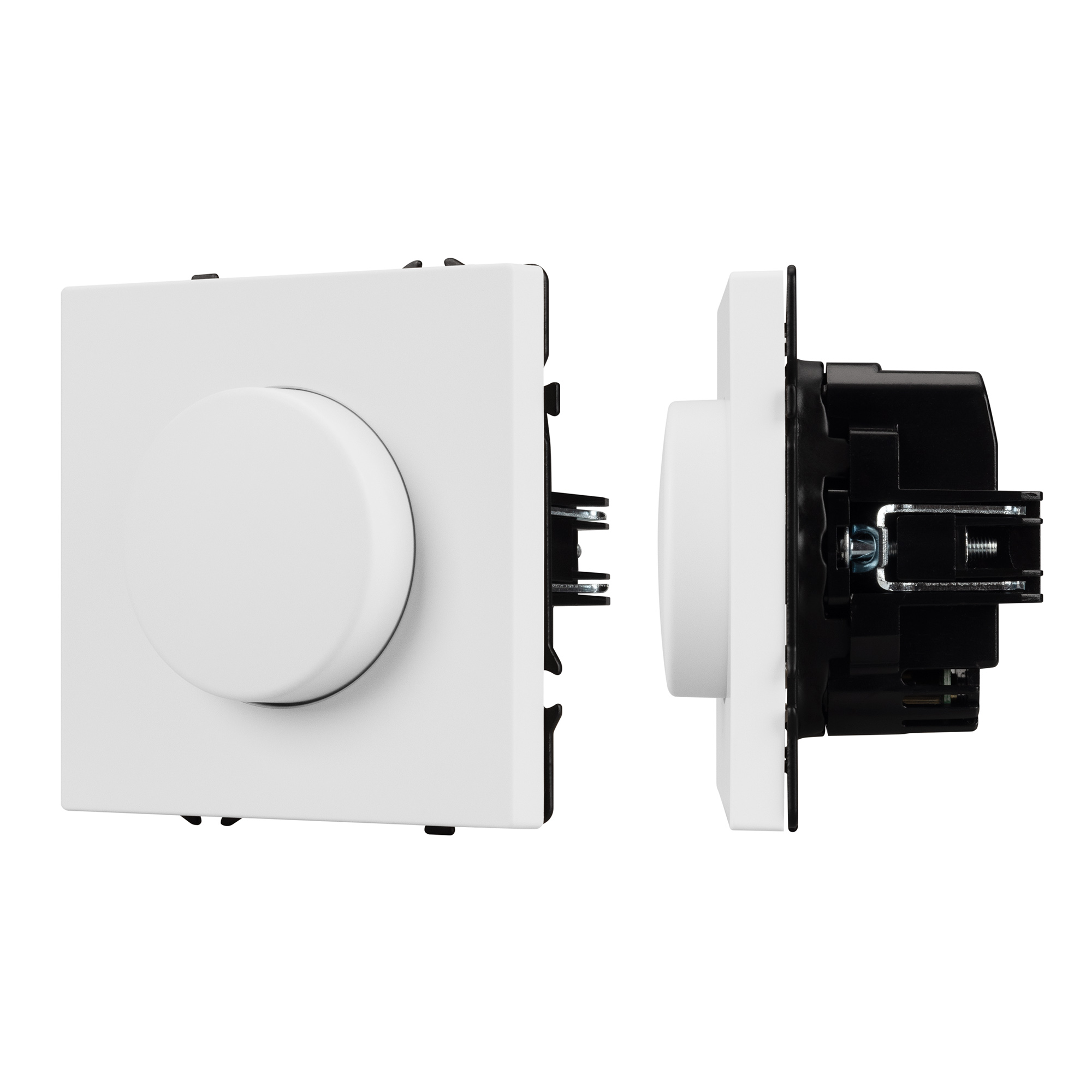 Светорегулятор совместим с рамками серии NOBE, создавая утонченный минималистичный вид. Скрытый тип монтажа позволяет гармонично встроить в интерьер любого современного дизайн-проекта. Видимая часть механизма выполнена из высококачественного пластика цвета белый кварц и имеет Soft-Touch покрытие, что придает изделию приятные тактильные ощущения и стильный внешний вид.