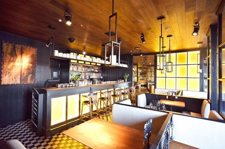 Декоративная и акцентная подсветка бара-ресторана "Solnce" («Солнце») на проспекте Добролюбова в Санкт-Петербурге. В подсветке интерьера использовалось светодиодное оборудование торговой марки