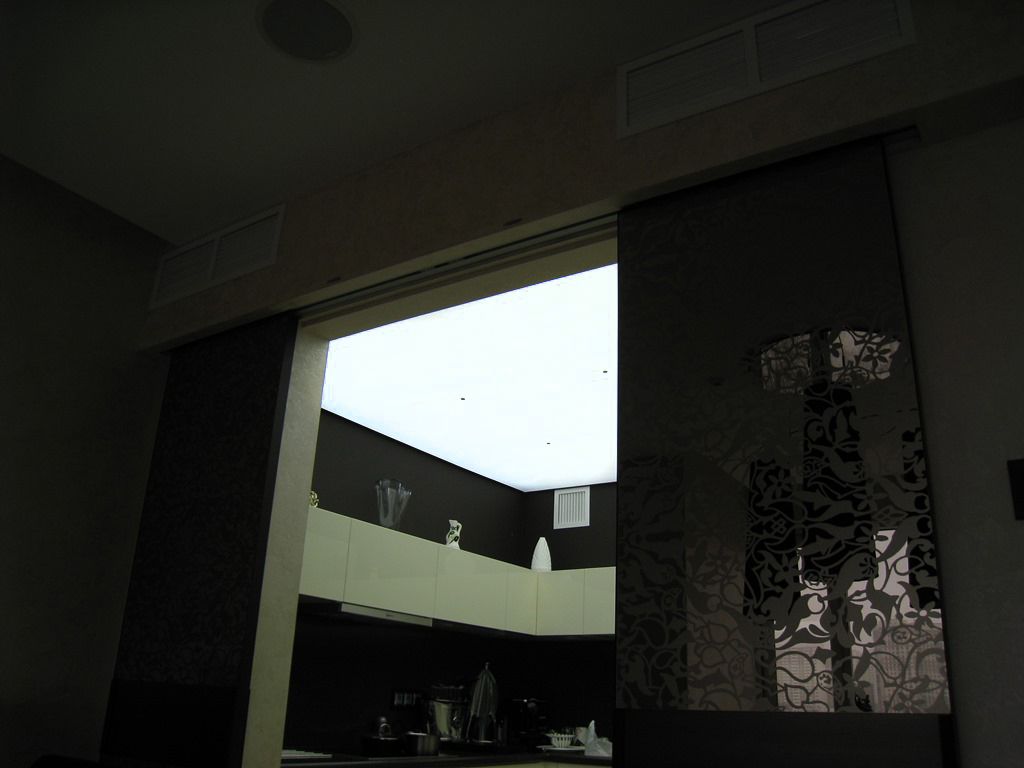 Итак, теперь, пожалуй, вернемся и к подсветке рабочей поверхности. Это действительно один из ключевых моментов организации светового пространства кухни, т.к. если в помещении присутствует только основное освещение, то зачастую хозяйка, готовя пищу, поворачивается к нему спиной, тем самым закрывая от света рабочую поверхность. Такой ситуации, конечно, можно избежать, поставив рабочий стол в центр кухни, но, согласитесь, все еще не часто размеры кухни позволяют это сделать. Выход – дополнительно освещать разделочные столы.